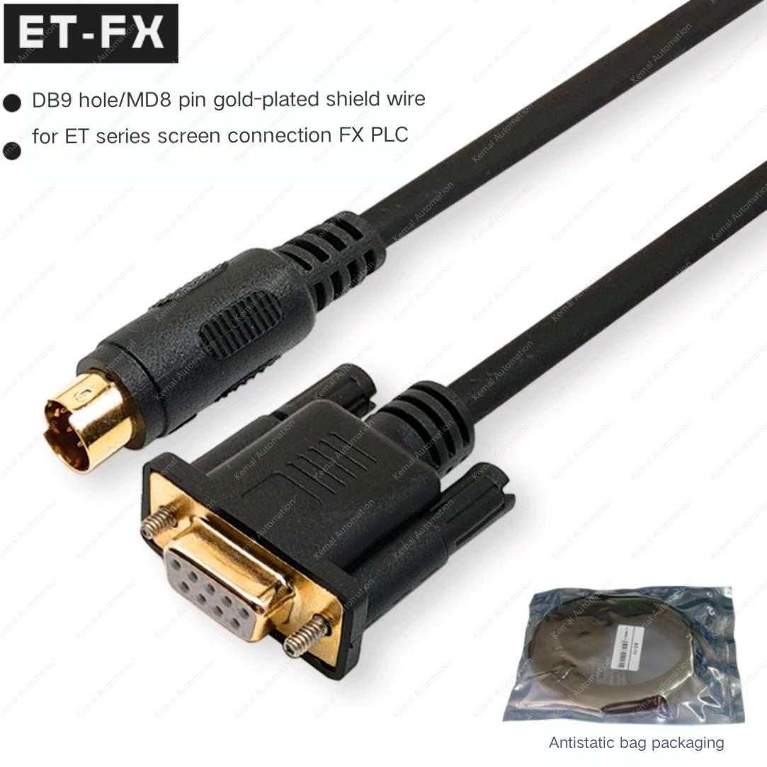 Process: nickel plating/gold plating; Wire: soft wire + shielding; Jacket: environmentally friendly PVC Buke touch screen and Mitsubishi FX series PLC connection communication download line; ET-FX: Buke ET series touch screen with Mitsubishi FX series PLC; MT54-FX: Buke MT and GL series touch screen with Mitsubishi FX series PLC